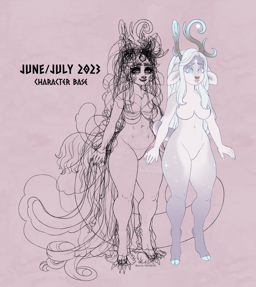 This base contains : 1 base body with a chubby belly ALT 2 breast sizes 2 top surgery scars 2 options for belly nipples for both body sizes 5 feet options 3 nail for hands options 5 eye options 5 nose options 6 mouth options 6 eyebrow options 5 unicorn horns 6 sets of horns 3 "fluff" options 13 tails 10 ears 6 hairs 2 tiaras